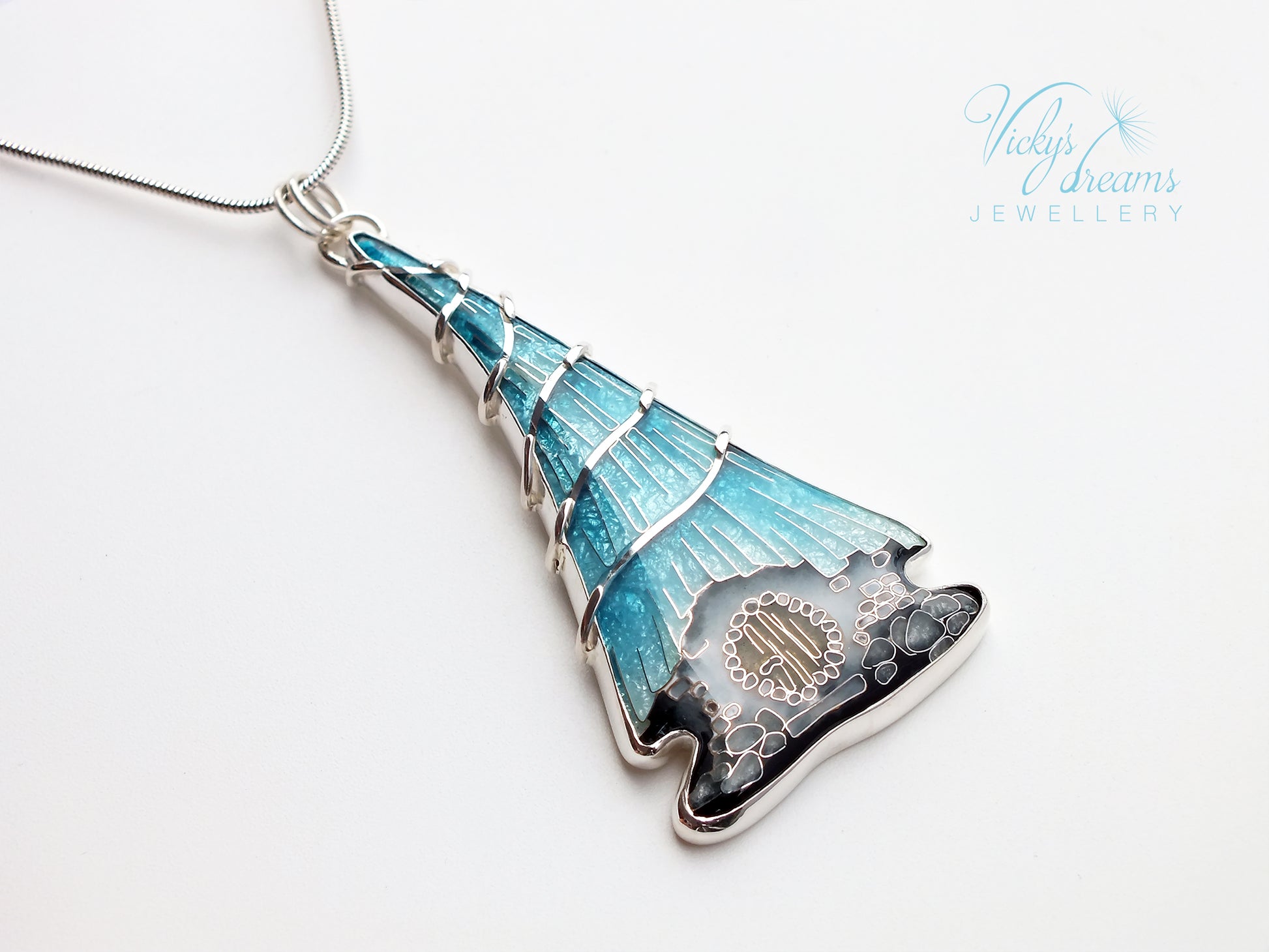 Made with love this beautiful, handmade cloisonné enamel fairy house design pendant, set in silver bezel.