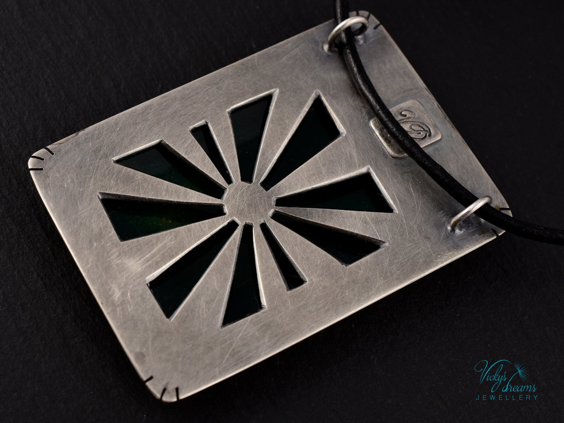 Created using the cloisonné technique, the enamel is kiln-fired onto a copper base lined with fine silver, then set in an antiqued sterling silver bezel. At checkout, you can choose from three options: a soft leather cord, a sterling silver chain, or without a chain.