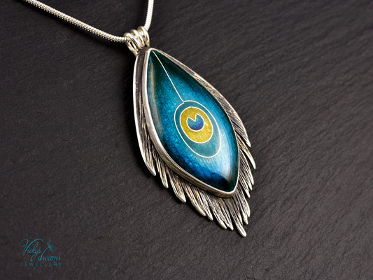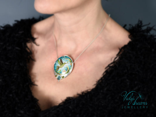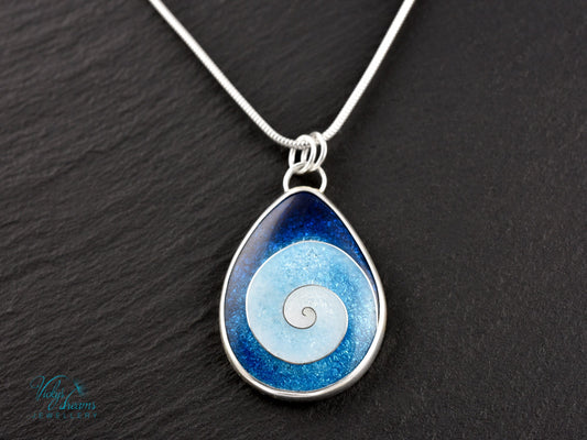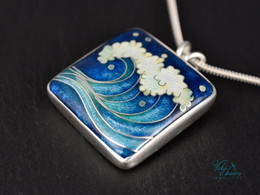 Handmade Cloisonné Ocean Wave Pendant Necklace – Sterling Silver Jewelry