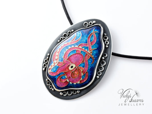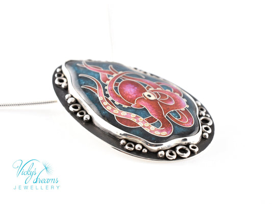 Handmade Cloisonné Octopus Pendant Necklace – Sterling Silver Enamel Jewelry-Custom order