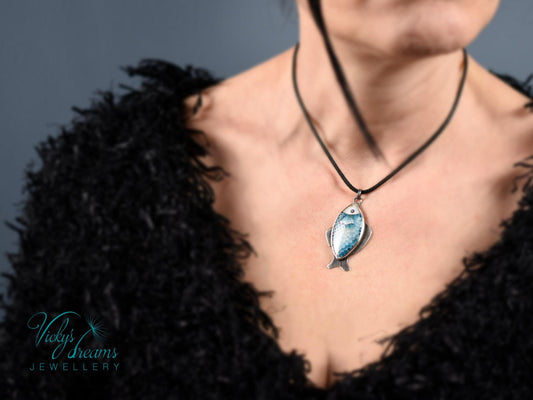 Blue Fish Sterling Silver Necklace – Cloisonné Enamel Pendant
