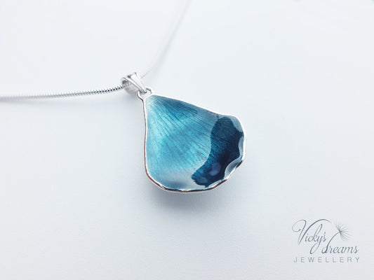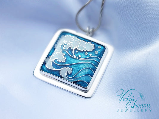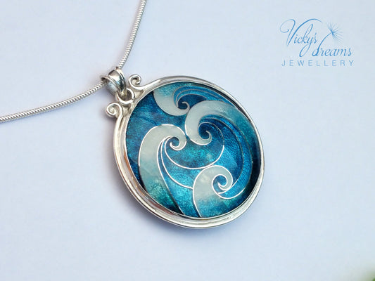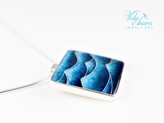Cloisonné Enamel Blue Seawaves Necklace | Handmade Sterling Silver Jewelry
