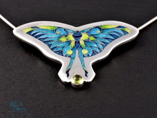 Cloisonné & Champlevé Butterfly Pendant: Peridot-Accented Enamel Artistry Necklace