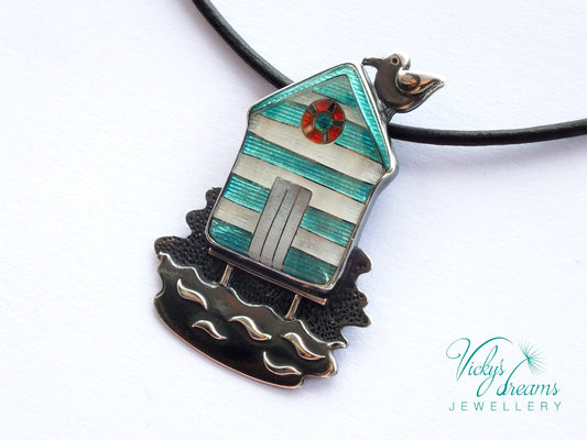 AcquiredBeach-hut-Cloisonne enamel-necklace