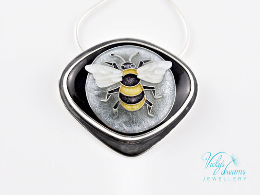 Honeybee Cloisonne Enamel Pendant Silver Necklace Sterling Jewelry Handmade Unique
