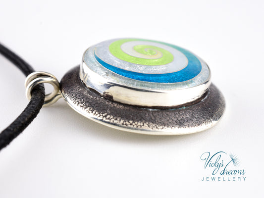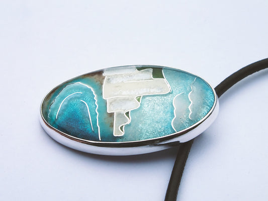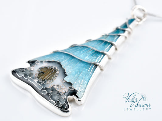 Handmade Cloisonné Ocean Wave Pendant Necklace – Sterling Silver Jewelry
