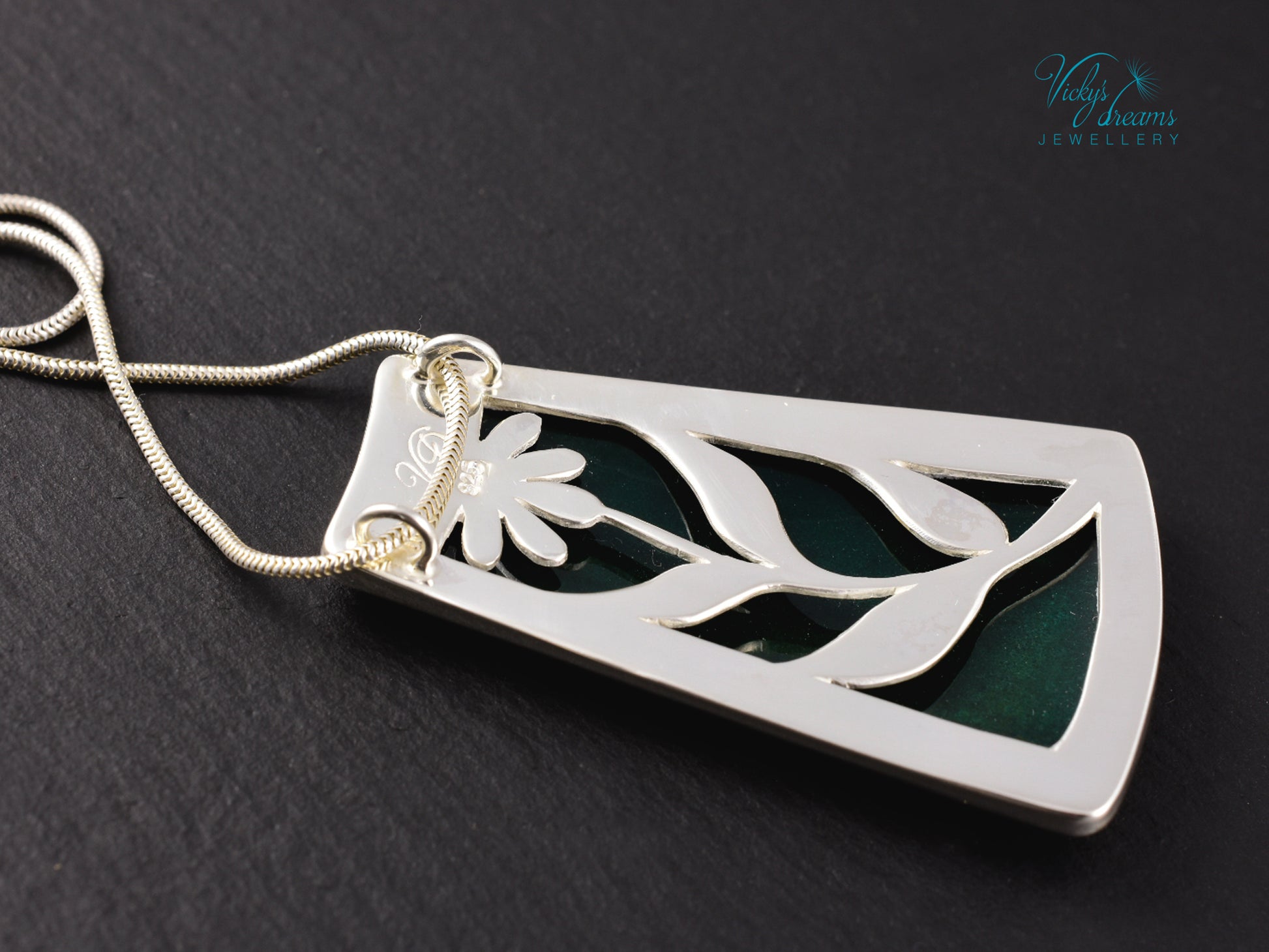 GORGEOUS Cloisonné enamel floral botanical pendant. Love the elongated Art Deco style shape and lovely colours, You not only see but feel the quality in Vicky's work and beautiful silverwork on the back too. Thanks