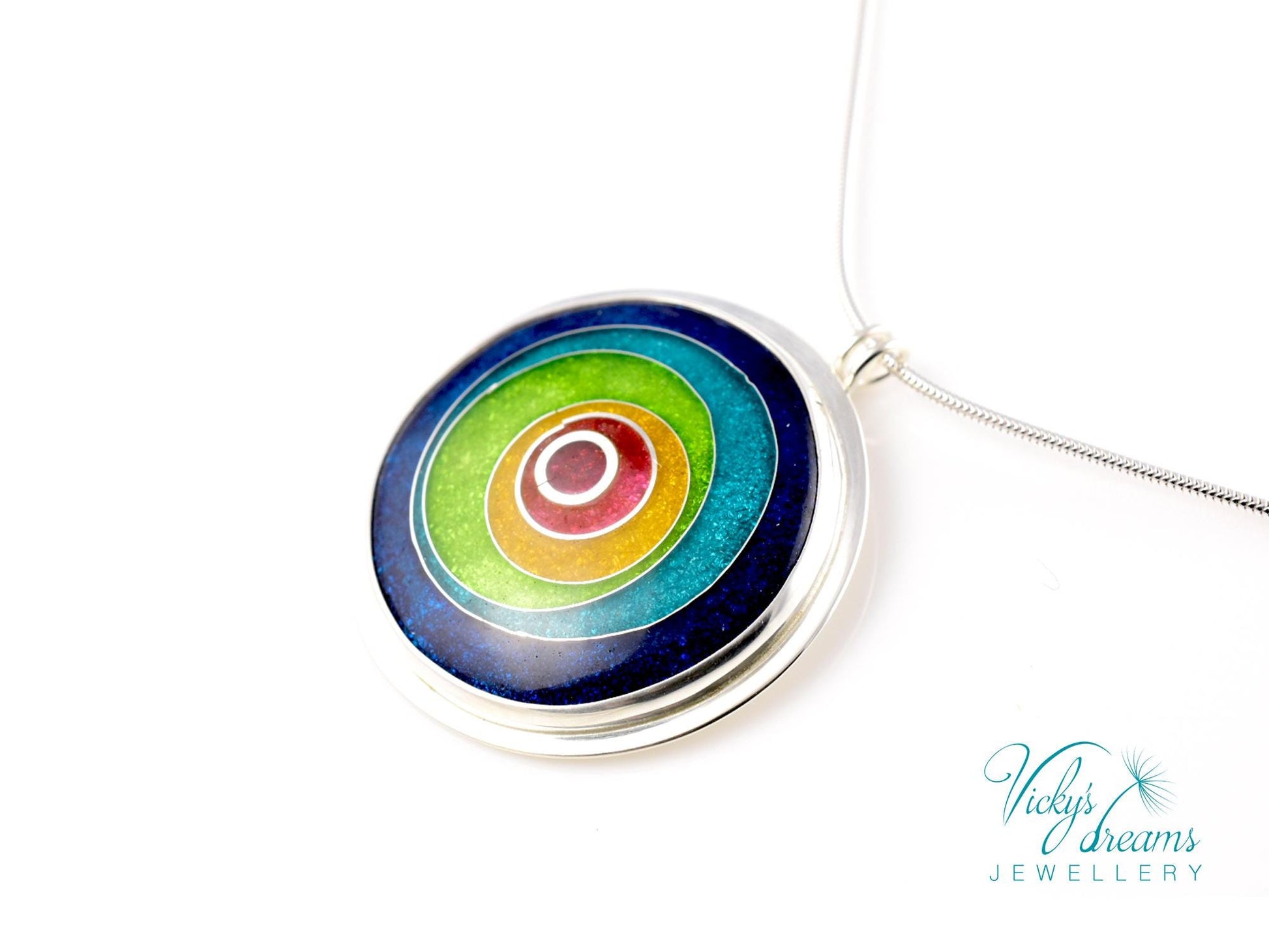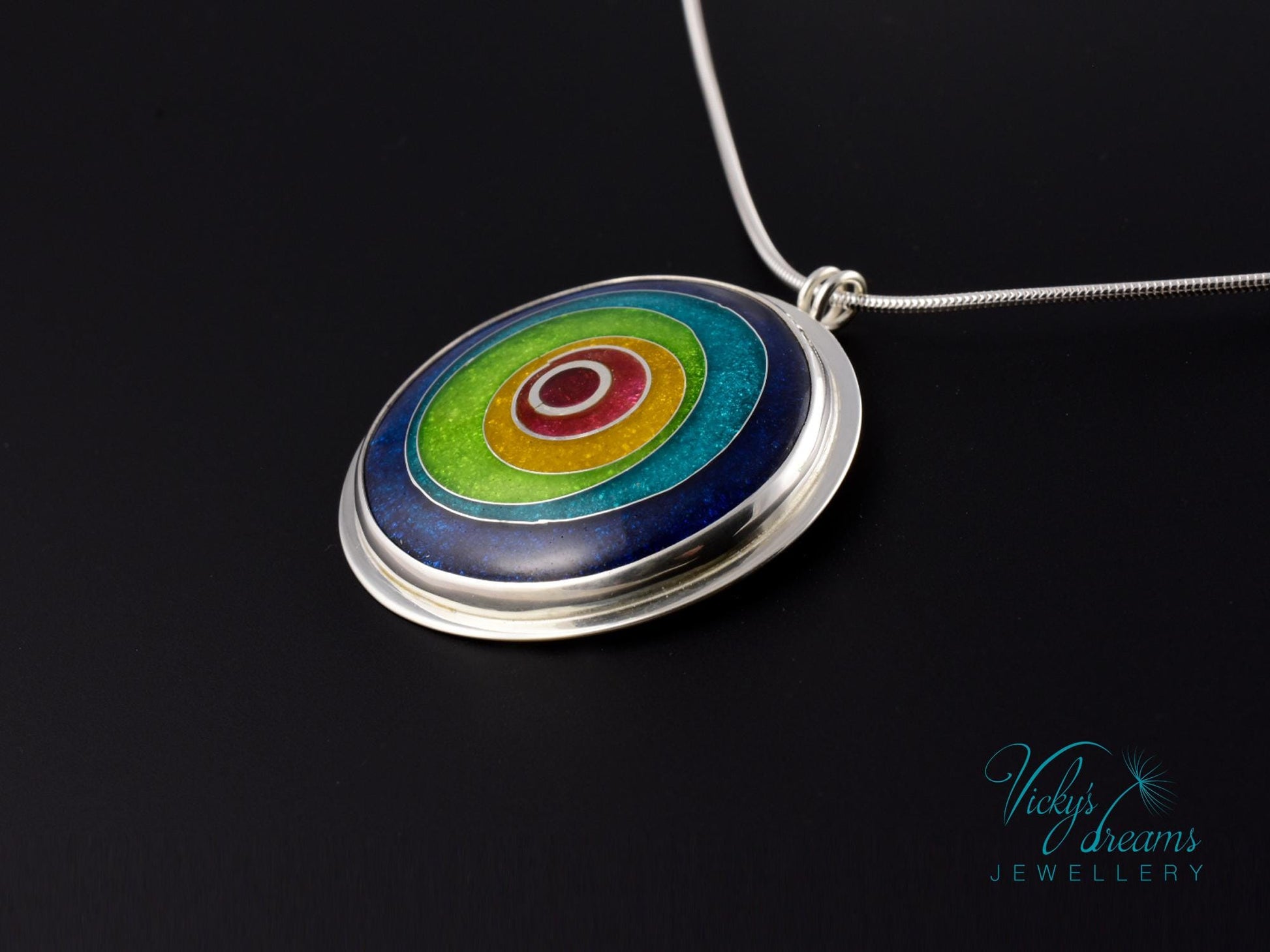 Enameled vibrant color Sterling Pendant - Silver Cloisonne Necklace