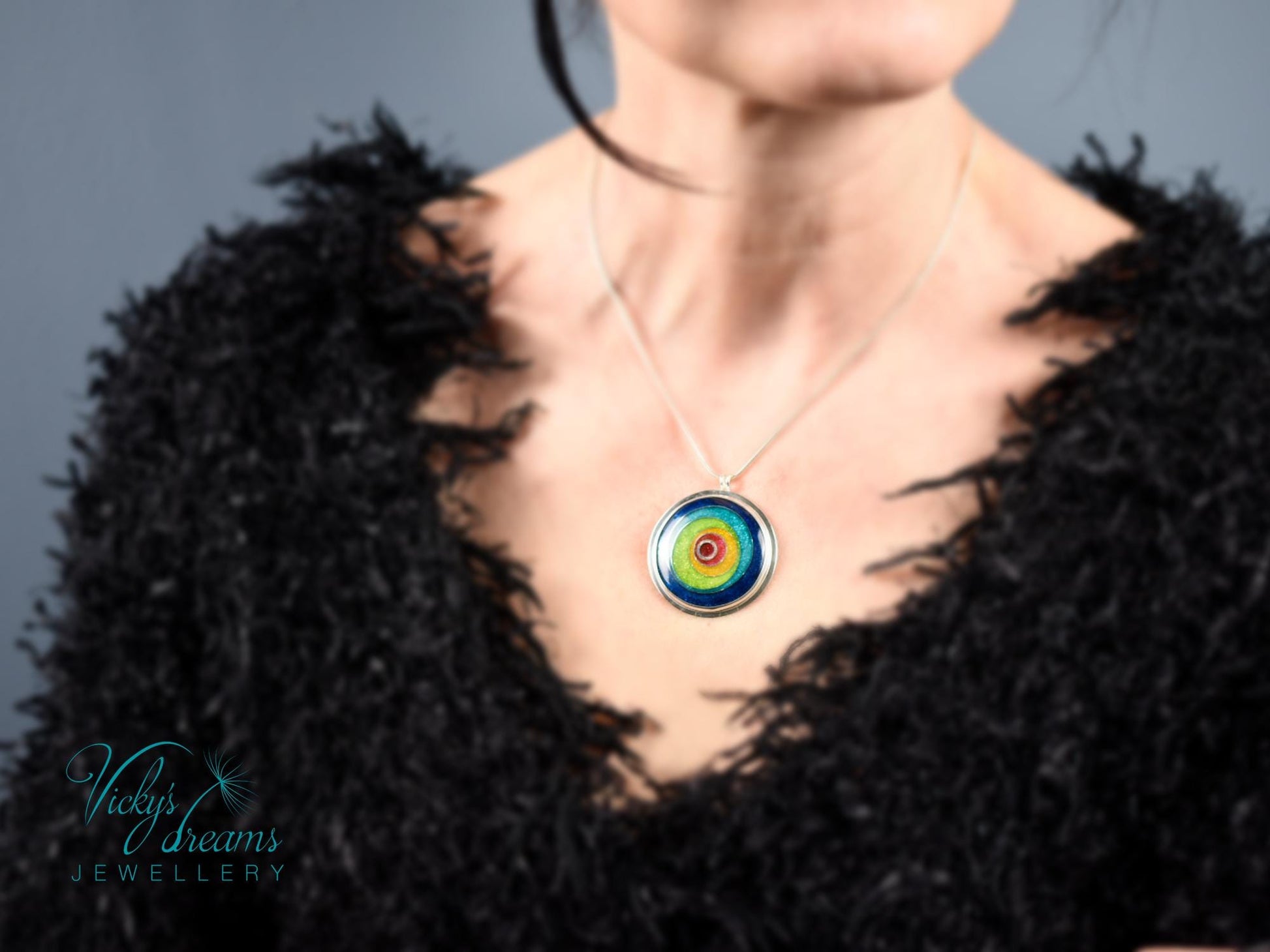 Cloisonné enamel necklace with vibrant colour circles design.