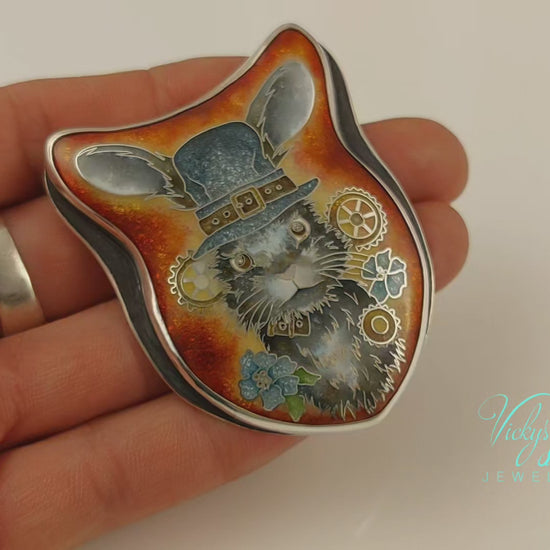 GORGEOUS gentleman bunny! Love the quirkiness and detail of this delightful cloisonne pendant, the buckled hat and big ears sticking out, to the whiskers and little flowers, great colours and shape too. Another outstanding piece of art. Thanks