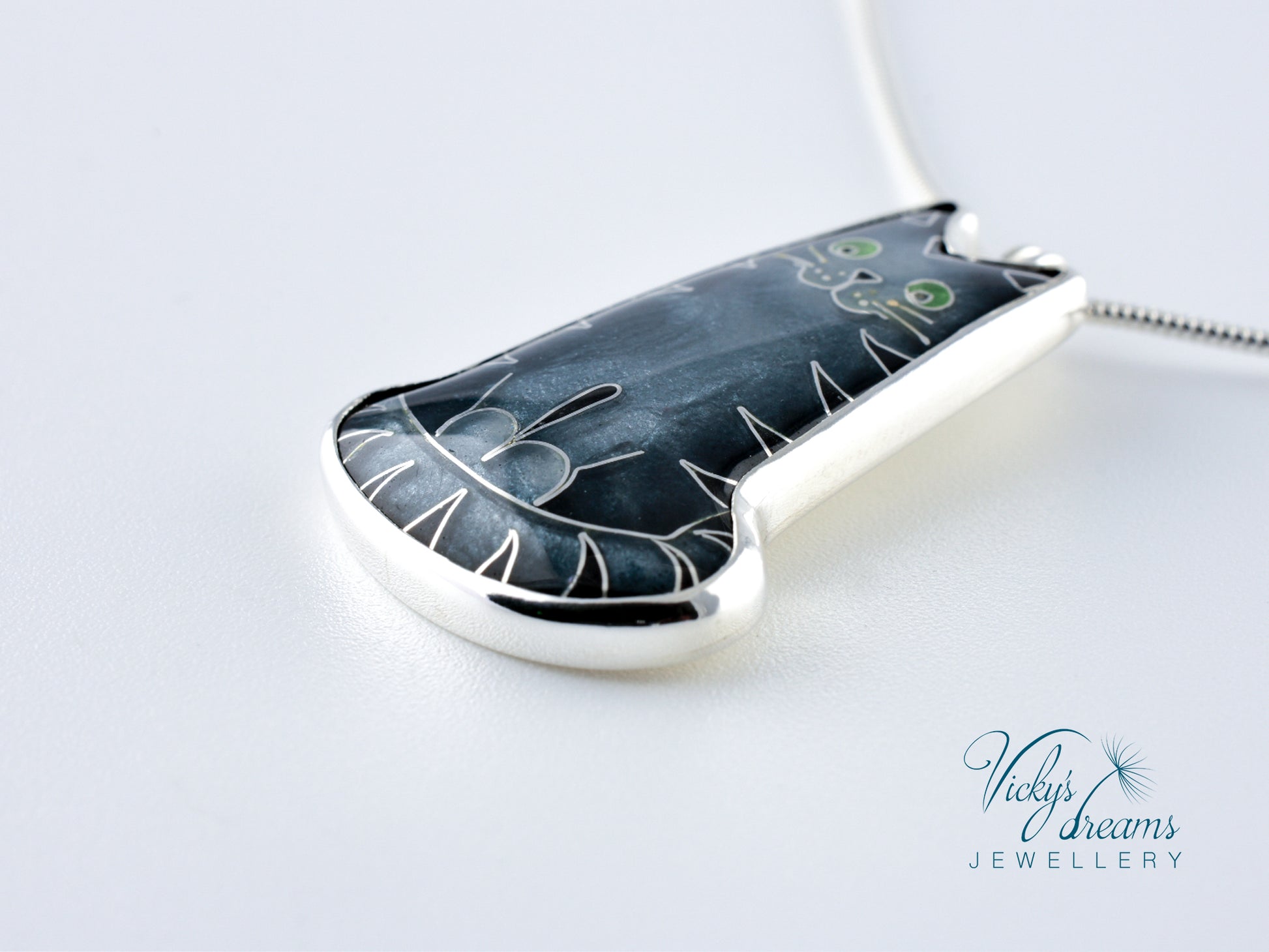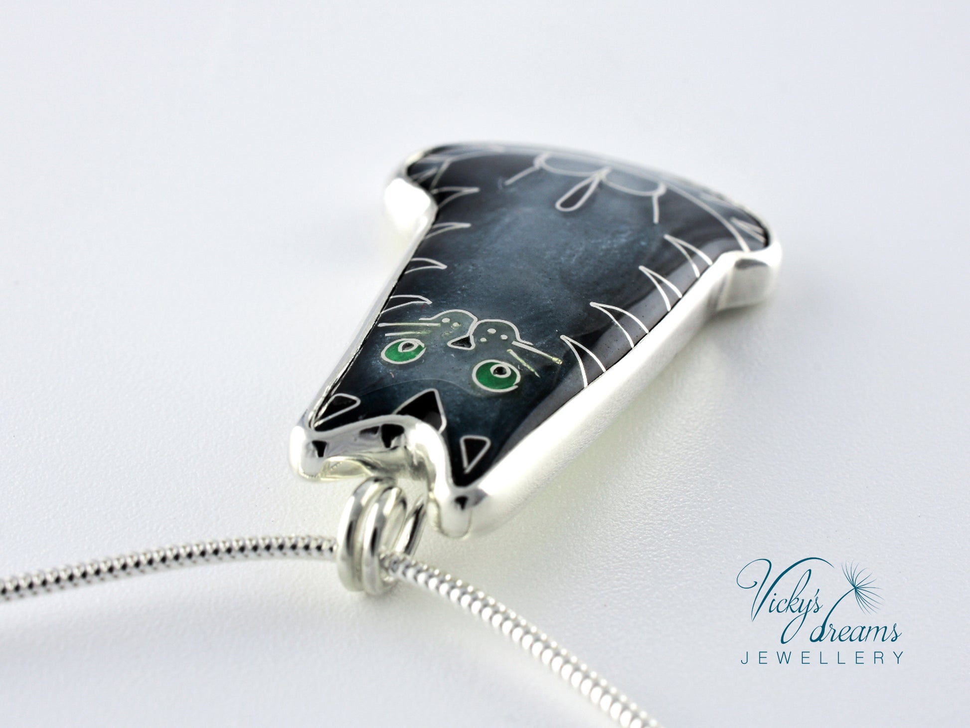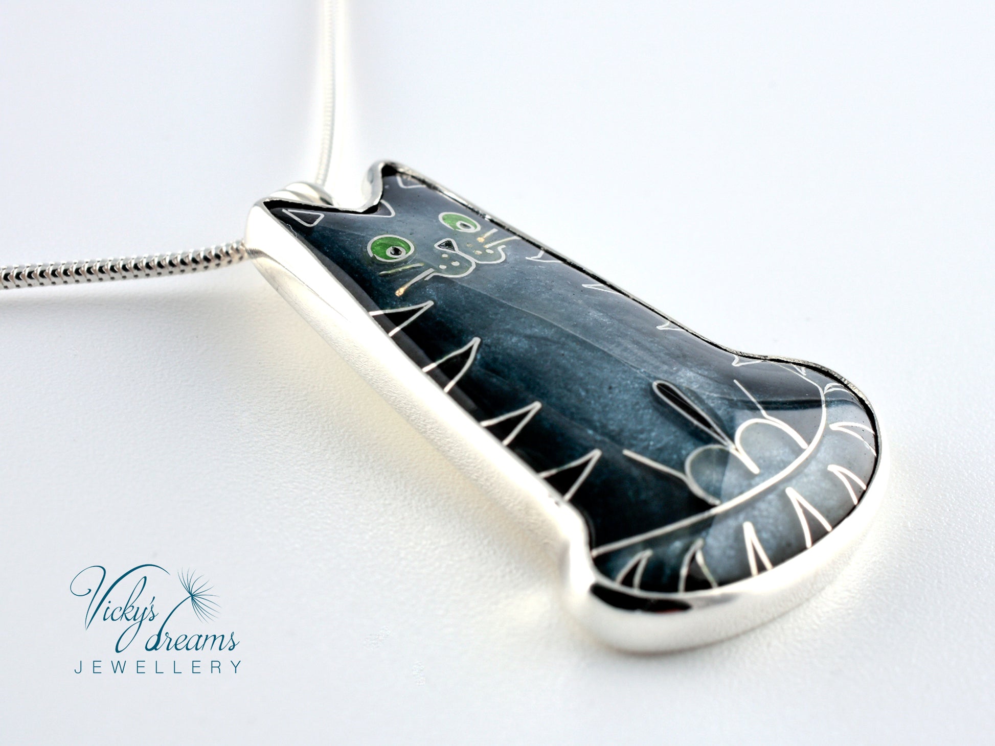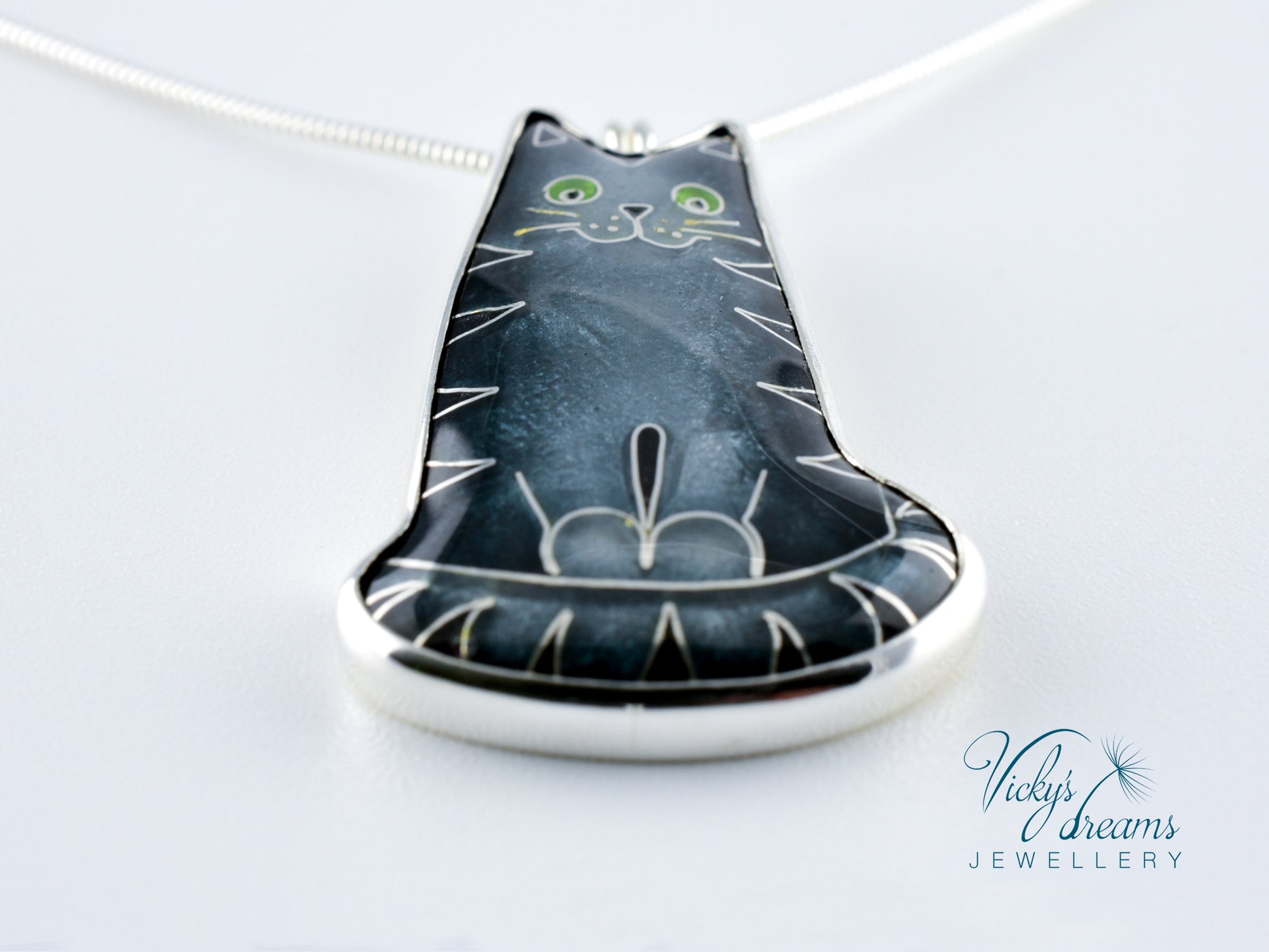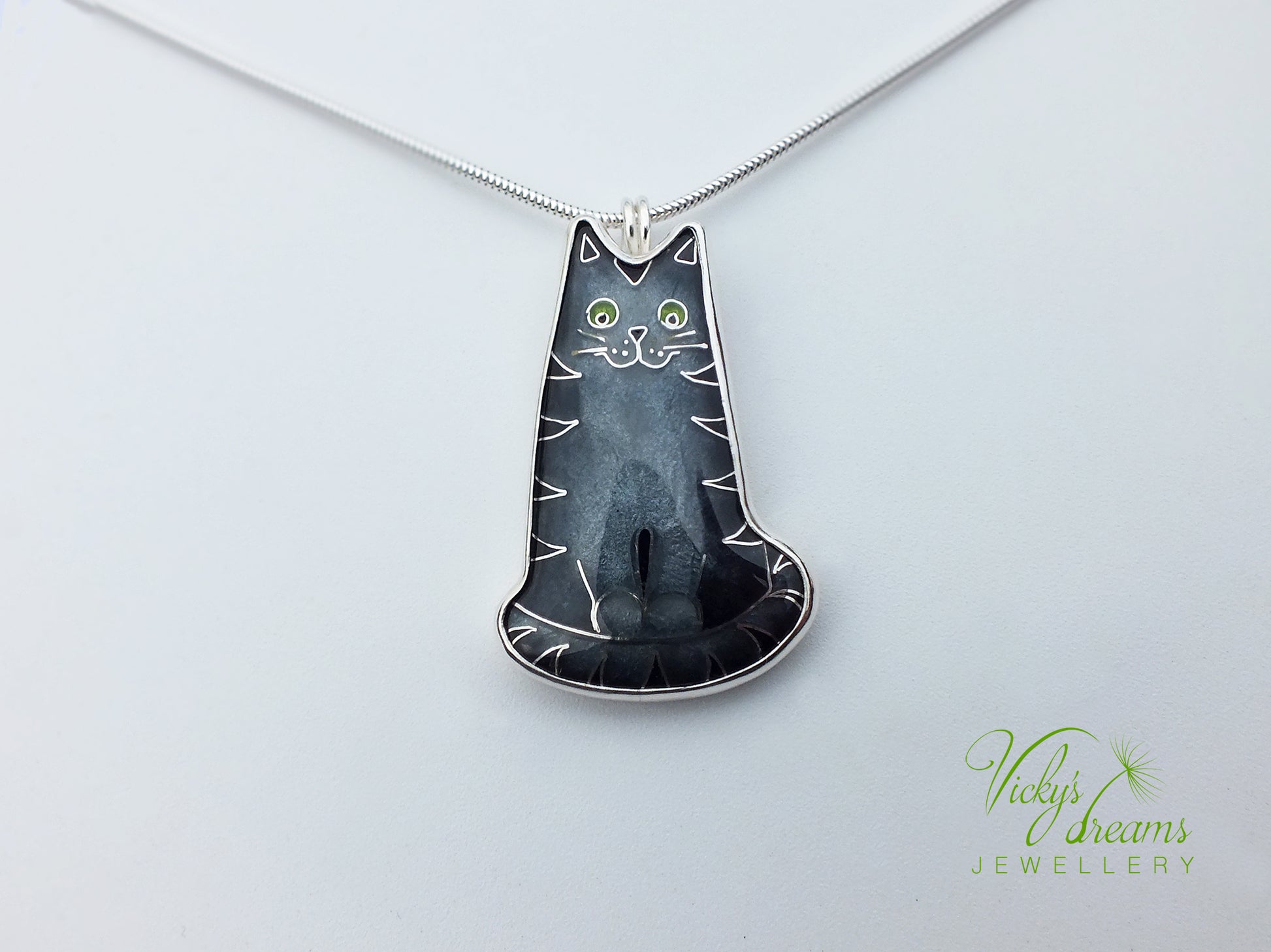 Made with love this beautiful, handmade cloisonné enamel gray cat design pendant, set in sterling silver bezel, with sterling silver necklace.Perfect for any cat lovers as a gift, or just treat yourself with it.