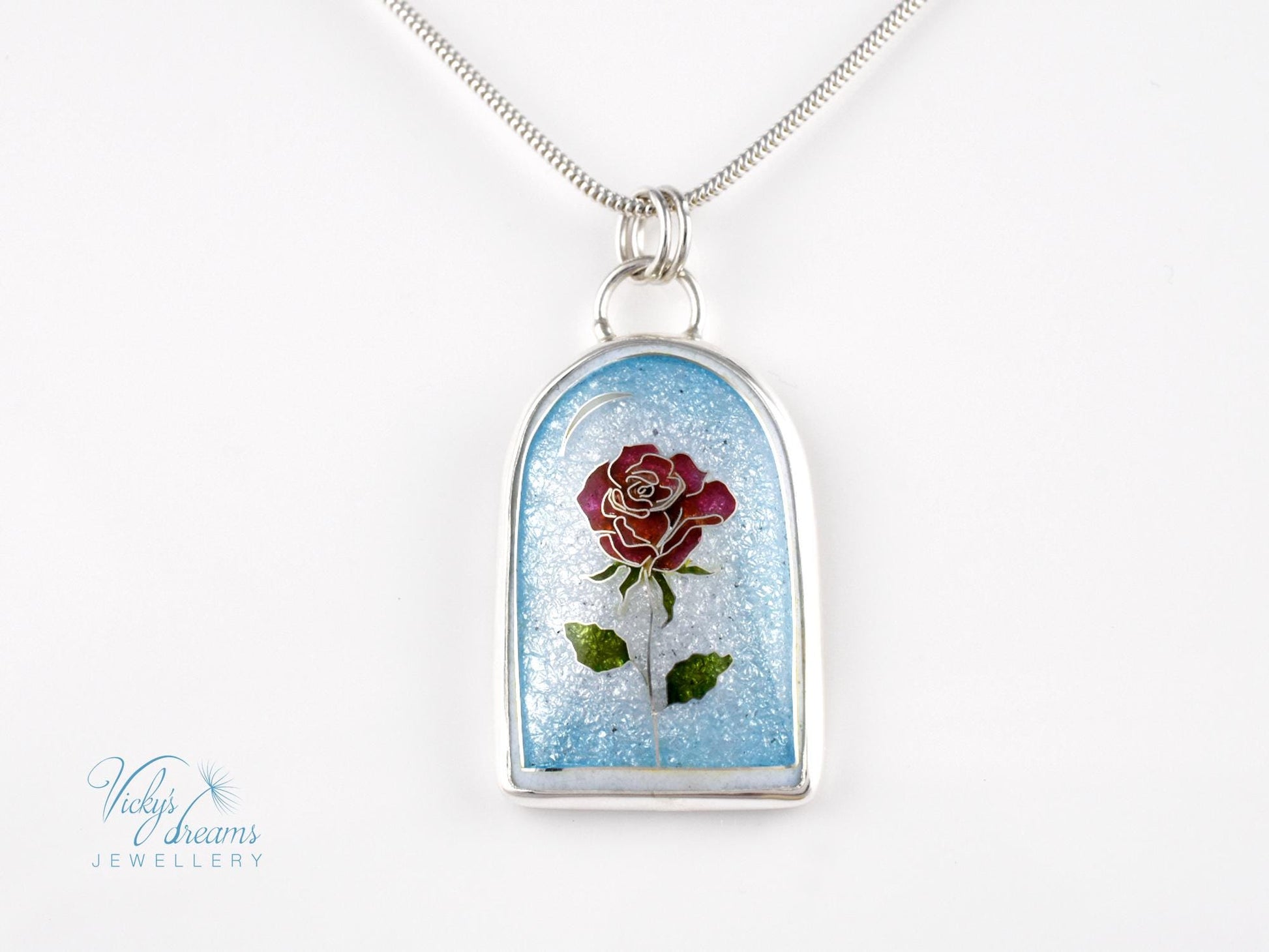 Handcrafted Cloisonne The Little Prince's rose Pendant: Sterling Silver Enameled Necklace Art Necklace